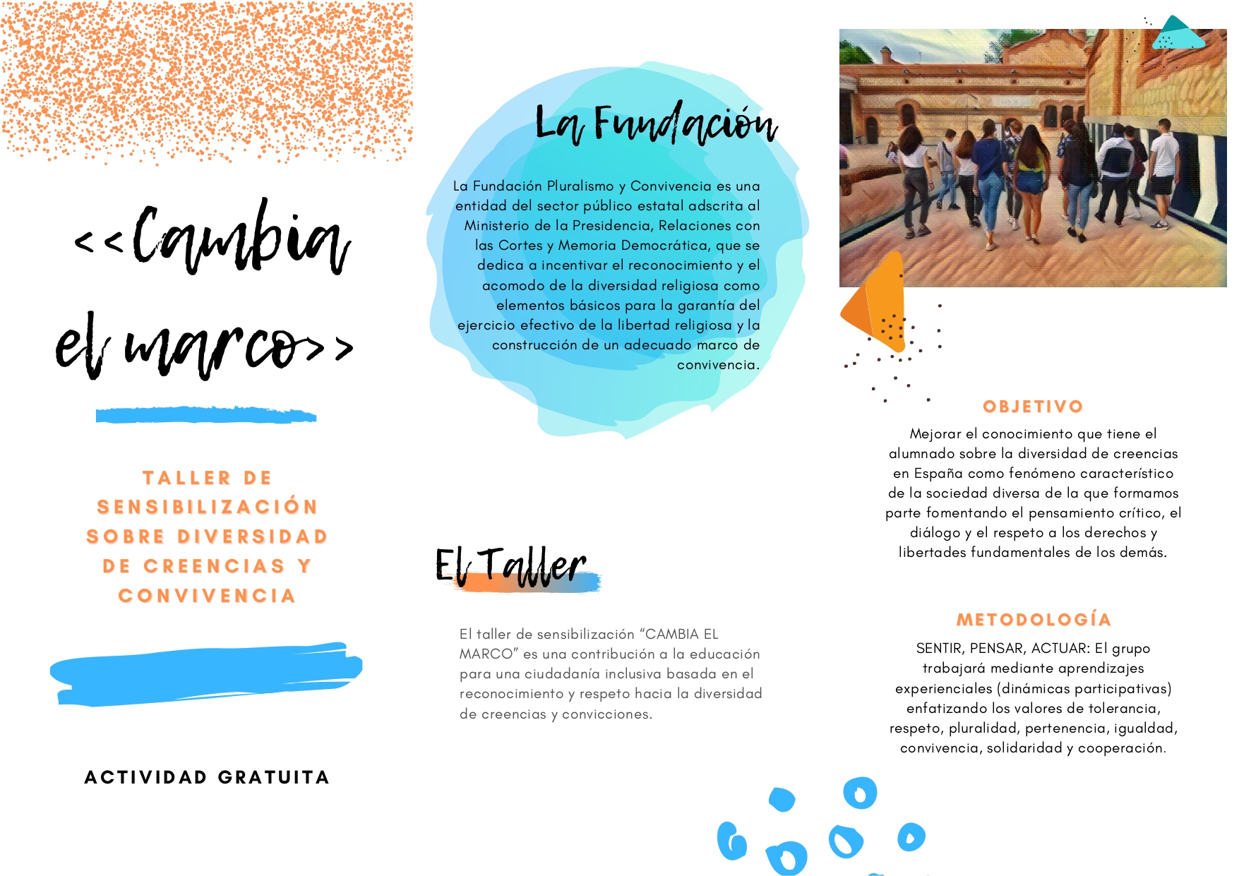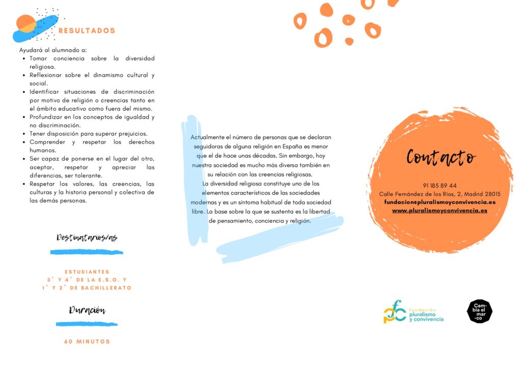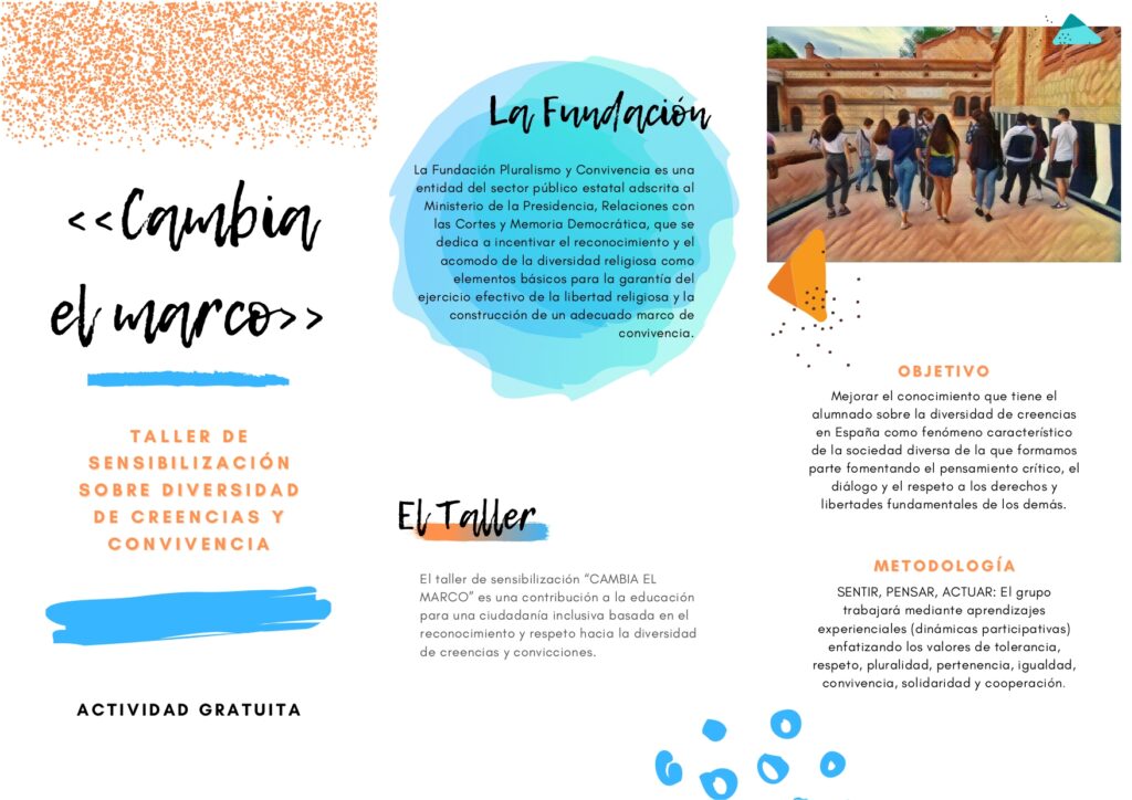 Promover la convivencia no siempre es fácil. El taller de sensibilización “Cambia el Marco” es una contribución a la educación para una ciudadanía inclusiva basada en el reconocimiento y respeto hacia la diversidad de creencias y convicciones. Escríbenos para impartirlo de forma gratuita en tu centro.